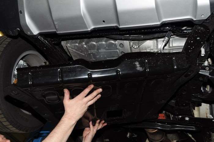 Так же откручиваем и другие болты крепления защиты и убираем ее в сторону.