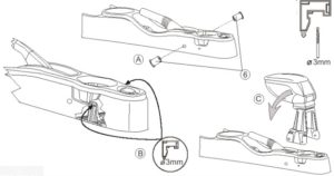 Затем устанавливается скоба-кронштейн и закрепляется с применением детали, удаленной на прошлом этапе. Далее монтируется тоннель. В данном элементе при помощи шила обозначаются места, по которым будет происходить фиксация. Впереди нужно проделать отверстия размером 9,5 мм (под муфты), а в задней части — 3 мм.