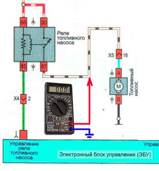 Удобнее всего определять, почему нет питания на бензонасос, при помощи мультиметра. Допустим, что +12В на насос выходят из реле, но к разъему топливного модуля так и не приходят. В таком случае необходимо прозвонить провода от реле к топливной секции. В режиме омметра вы не только найдете обрыв, но и сможете увидеть паразитное сопротивление в цепи. Рассматривая возможные причины, по которым не качает бензонасос, не забывайте о поломке иммобилайзера. Нередко в таких случаях двигатель запускается, но через несколько секунд глохнет.