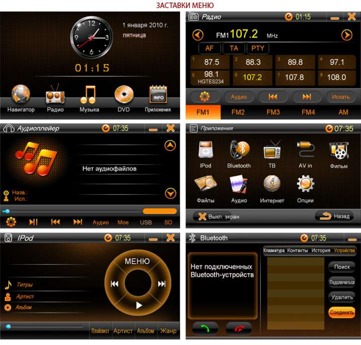 Встроенный медиаплеер способен воспроизводить аудио/видео всех популярных форматов, таких как, например, MP3, MPEG4, MPG2, FLAC, MKV и др. В качестве носителей можно использовать CD/DVD диски, SD карты (до 32 гб), USB-совместимые устройства, такие как Android, iPhone, iPod.