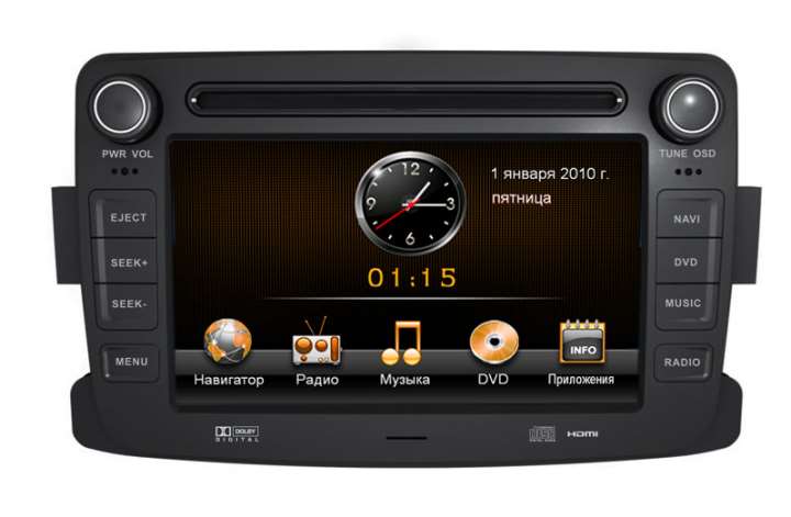 Как известно, все комплектации Рено Дастер оснащаются штатной магнитолой, кроме минимальной комплектации Authentique, в которой её можно приобрести только опционально. Сама по себе стандартная система Media NAV довольно неплоха, однако в ней есть два довольно больших минуса: нет поддержки аудиоформатов, кроме mp3 и нет возможности воспроизведения видеофайлов. Поэтому INTRO CHR-1414 является лучшей заменой штатной голове Renault Duster. Да, она хоть и стоит дороже, чем штатная (12 000 против 22 700), однако взамен Вы получите полноценный мультимедийный центр, обладающий широчайшими возможностями.