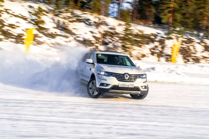 Тяжелый Koleos тоже может ездить боком! Но только после «спецподготовки» в рамках школы вождения