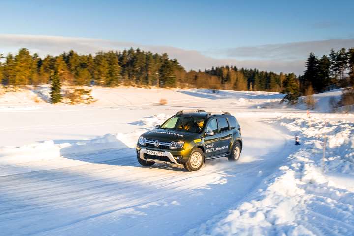 Год назад мой коллега Мельников уже посещал «Дастерскую» — почему же и я сажусь за руль не особо мощных кроссоверов Renault Duster, Kaptur и Koleos на льду замерзшего озера в Карелии? Потому что на этот раз обещан «тренировочный шип»!