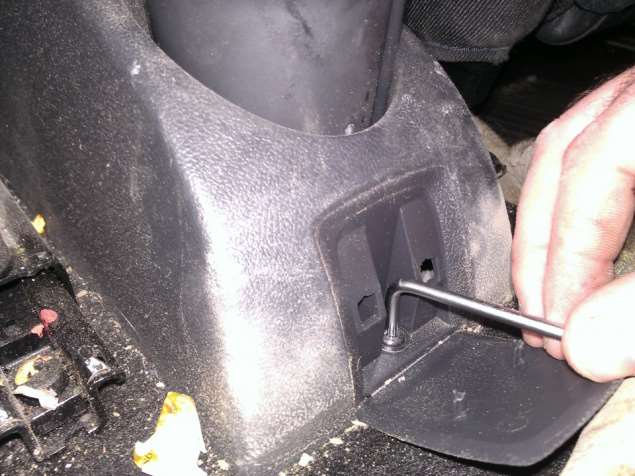 В отличие от многих отечественных автомобилей регулировка ручника на автомобиле Рено Логан не требует поднятия автомобиля и работы под его днищем — подтягивать трос следует непосредственно из салона машины. Но для начала необходимо добраться до регулировочного механизма, демонтировав облицовку тоннеля пола. Для этого вам понадобится ключ TORX T20 и отвёртка с плоским лезвием.